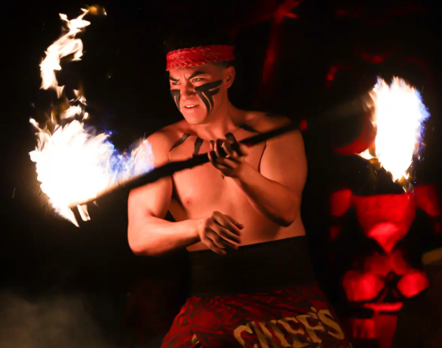 Join World Fire-Knife Dance Champion Chief Sielu and his tribe for a night of fire, laughter, and island magic. Interact with dancers, weave a banana-leaf headband, try spear throwing, hula, poi, and Lomi Lomi Salmon.