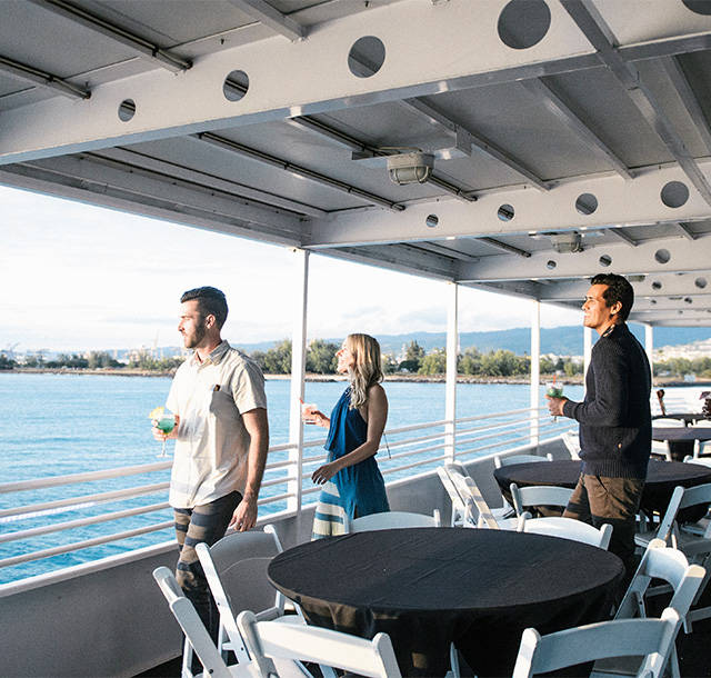 Make your Friday night spectacular—cruise Waikiki’s waters with cocktails in hand as vibrant fireworks explode above.