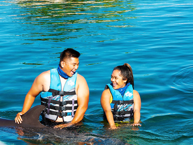 Swim nose-to-nose with bottlenose dolphins in a deep-water lagoon. Learn about their behavior and join enrichment activities guided by expert trainers.
