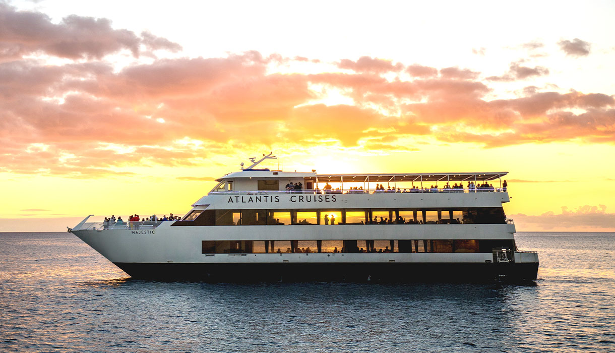 Set sail as the sun dips below the horizon—sip cocktails, soak in Waikiki’s skyline, and enjoy a chic sunset experience aboard a luxury yacht.
